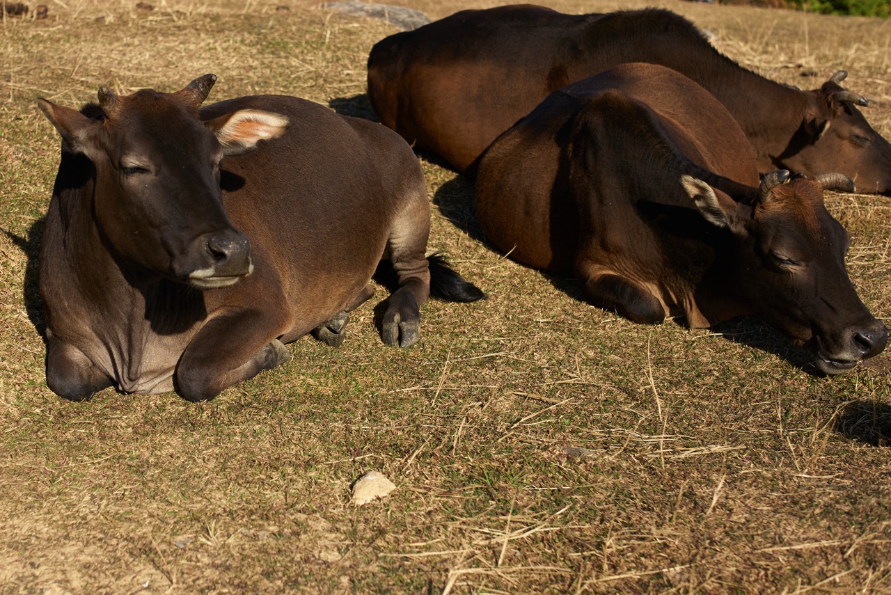 对于非硬核户外游客(i.e., 大多数游客),推荐下船后直接左转,沿村民铺设路线前往岛屿东侧的海岸。前行5-10分钟会看到大量有机肥。继续前行即可到达塔门广场,一个较大的草坪公园,适合休憩和露营。广场上大约有几十头牛享用自助餐,情绪稳定,会与游客互动。